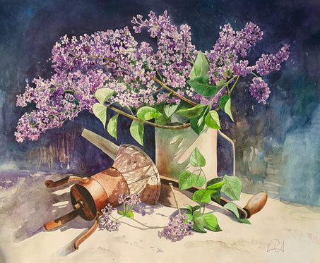 "Still life with lilac". Watercolor, 2020